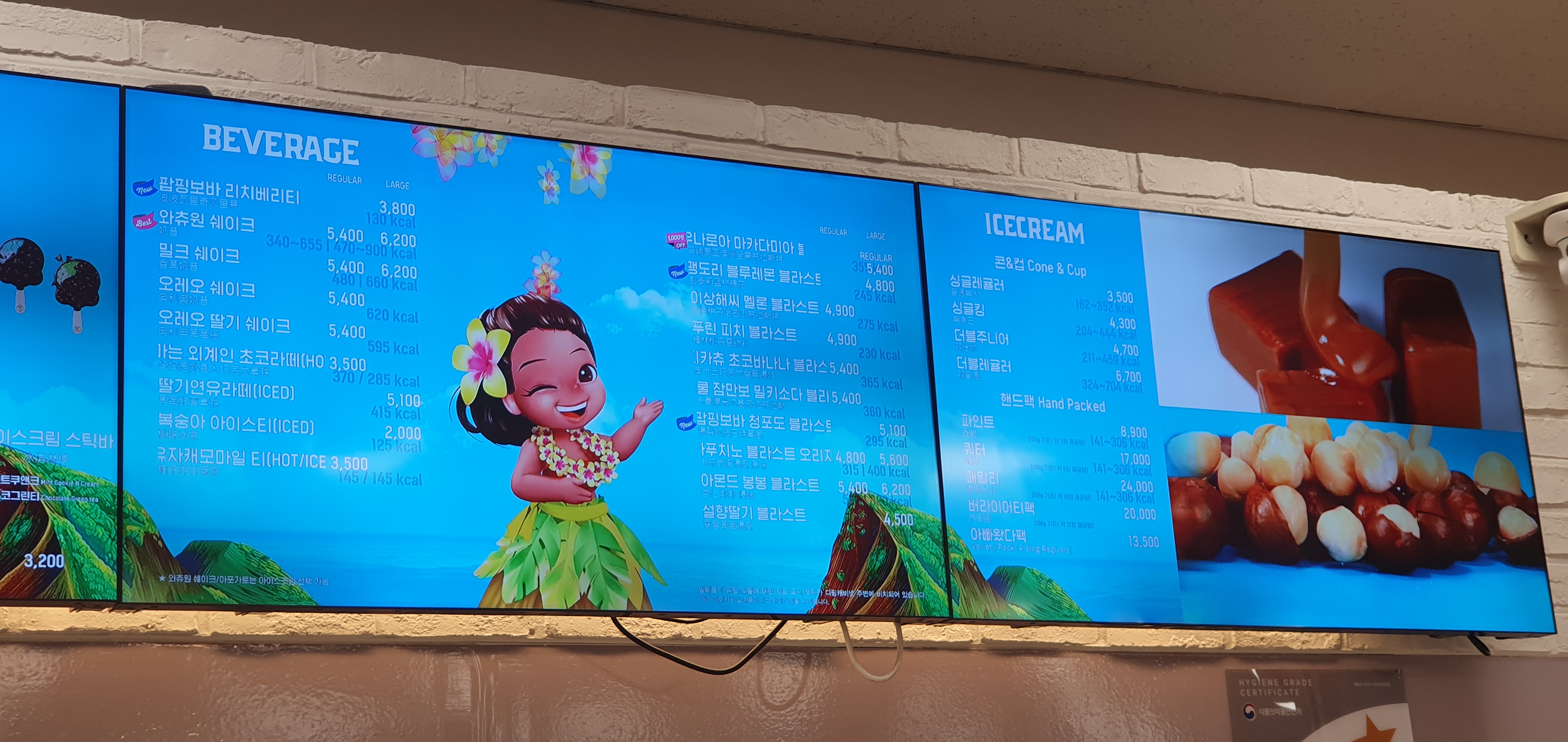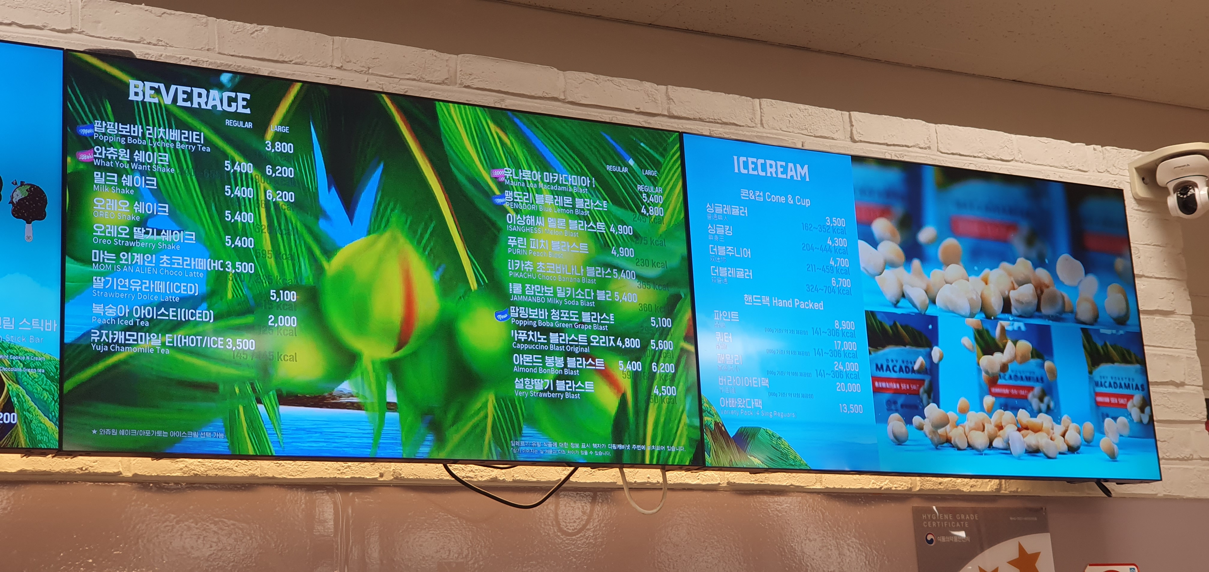 매장 전광판은 마카다미아가 쏟아지는 그림이였어요.